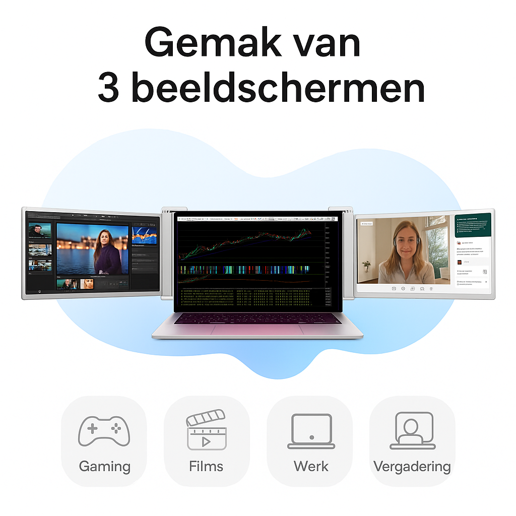 Werk net zo effectief onderweg als op kantoor. Meer schermruimte, minder gedoe.